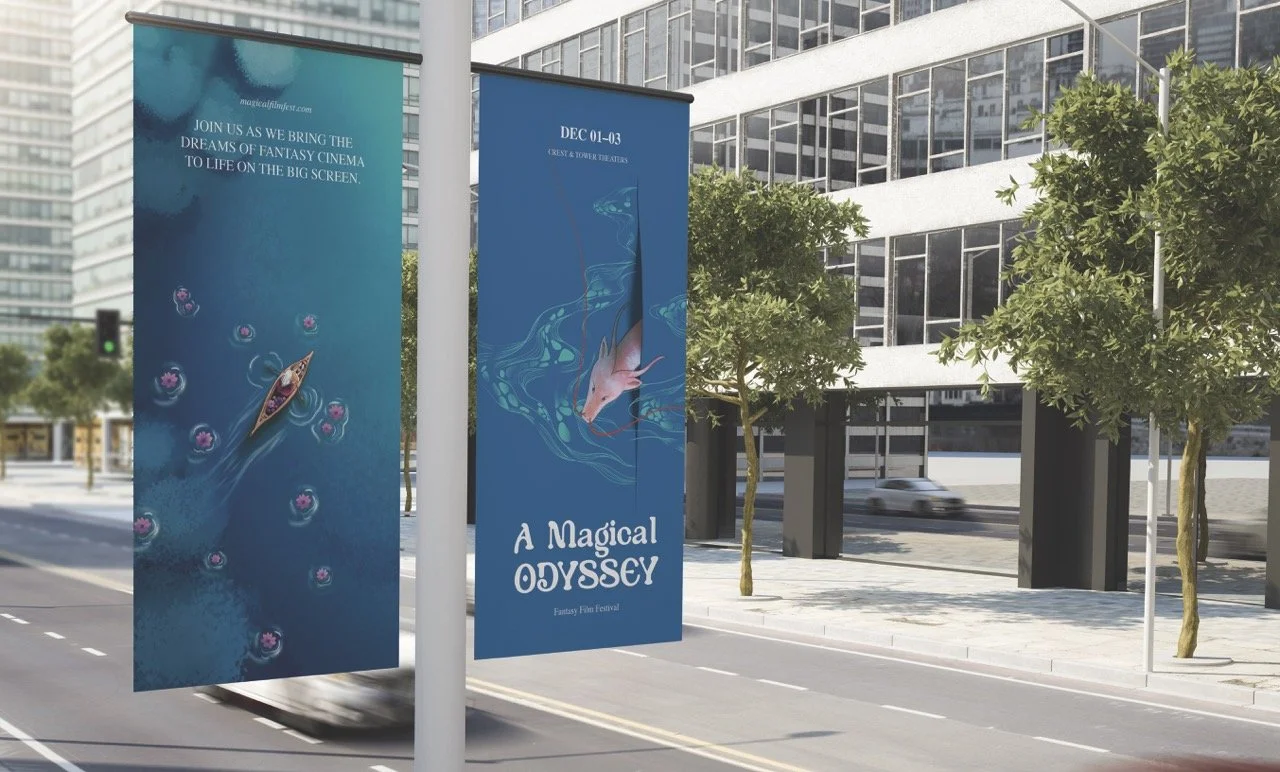 “A Magical Odyssey” was a project that designers aimed to develop an engaging and dynamic campaign to promote a unique fantasy film festival. The festival was hosted at two prominent theaters, Crest and Tower in Sacramento. This project embarked on the exciting journey of conceptualizing and executing a dynamic campaign for the festival.